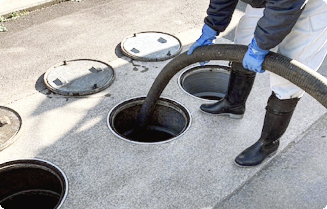 バキューム車による浄化槽の清掃を行っています。汚泥などを取り除き、水質管理を行っています。